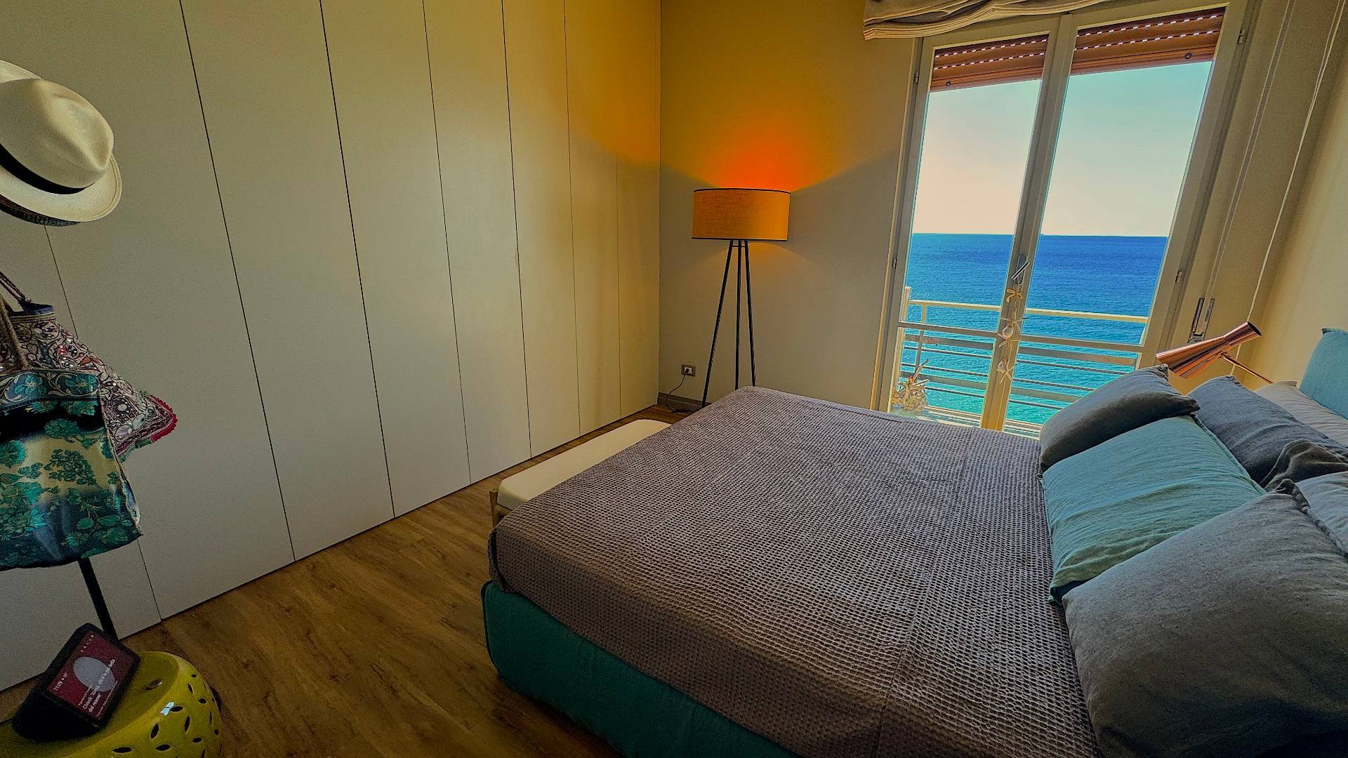 L' Appartamento viene venduto parzialmente arredato nei lussuosi componenti su misura come armadi, cucina e locale lavanderia; la disposizione interna comprende un ingresso, una cucina, una sala da pranzo oltre ad un soggiorno luminosissimo con vetrata panoramica mozzafiato ed un ulteriore porta finestra a cui si accede al bel terrazzo angolare, una camera matrimoniale anch'essa dotata di stupenda veduta sul mare ed un bagno.