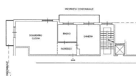 La disposizione interna è composta da un soggiorno con angolo cottura, una spaziosa camera da letto e un bagno. Tutti gli ambienti sono luminosi e ben distribuiti, garantendo una piacevole sensazione di spaziosità.